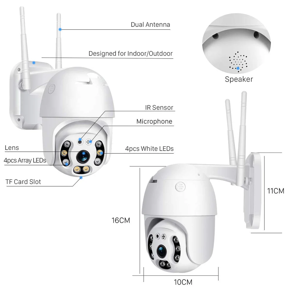 Full HD1080P Wi-Fi DOOM Camera, Two Way Audio/Motion Detection/Best Night Vision/Waterproof CCTV Camera Support Upto 128G SD,White