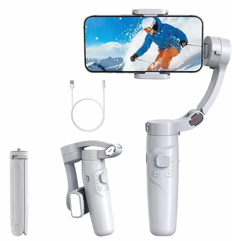 - 3-Axis Stabilization – Smooth, shake-free videos with pan, tilt & roll control