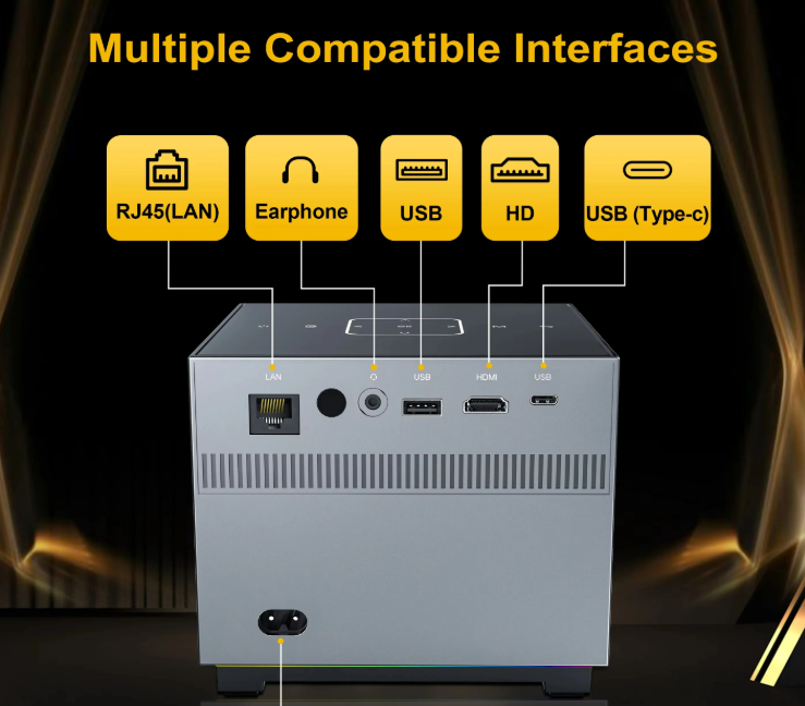 Magcubic HY300 Freestyle Projector with WiFi and BluetoothMain Features for the Magcubic HY300 Projector:5G + 2.4G WiFi BT 5.0 Support 4K 130-inch screen Auto Keystone Correction 180° Rotation 3W Hi-Fi Speaker Portable Size 50-100% Zoom Wired ScreeniOS Connect by Cables Connect your iPhone to the projector via the original iPhone charging cable. (Cable has a USB port and Lighting Port)Please click "Trust" when the iPhone shows a pop-up window.Enter device password.Wireless Screen(The Android Mobile/ Pad must be on the same network as the projector device.) Open the settings menu on your Android Mobile/Pad.Access your display settings or screen mirroring.